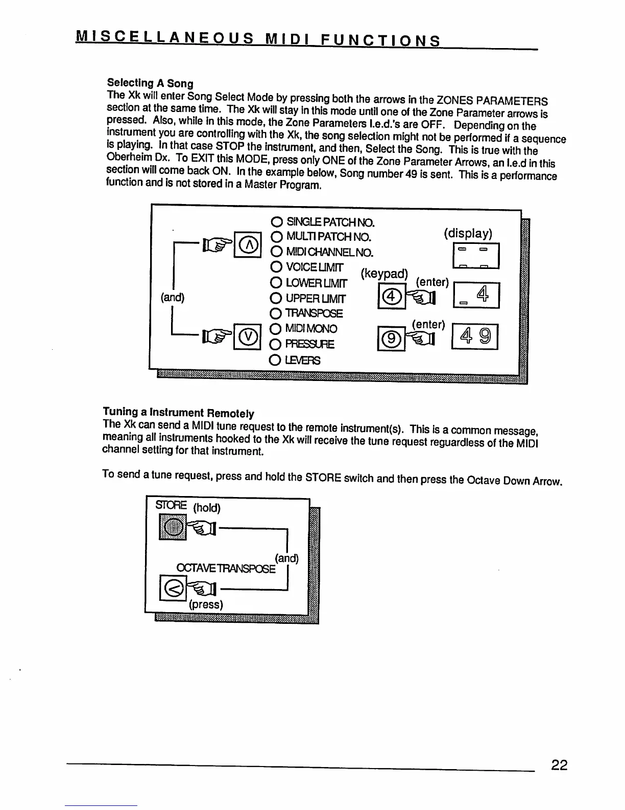 Oberheim XK - Selecting A Song; Tuning a Instrument Remotely