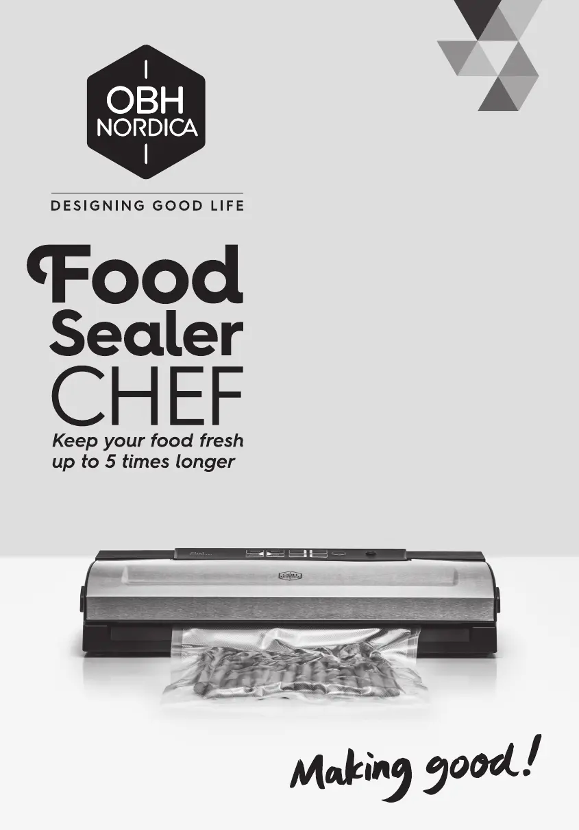 Leaks along the seal may be due to folds, liquid, or particles. Wipe off the bag opening before sealing. Ensure the bag opening is over the sealing unit and in the vacuum channel. Check that the gaskets are intact, clean, and correctly positioned. A leaking vacuum bag can also cause this issue; test the bag by sealing it with a little air and submerging it in water to check for bubbles. Reseal or replace the bag if necessary. Use only vacuum bags/canisters from OBH Nordica. Inspect the vacuum bag for holes. Avoid vacuum packing items that could damage the bag. Leave about 7 cm between the contents and the bag opening, but if there's too much air in the bag, cut off a piece to shorten it.