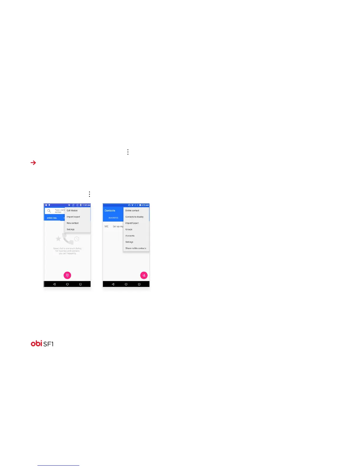 if you touch the Menu icon while in the Contacts feature: