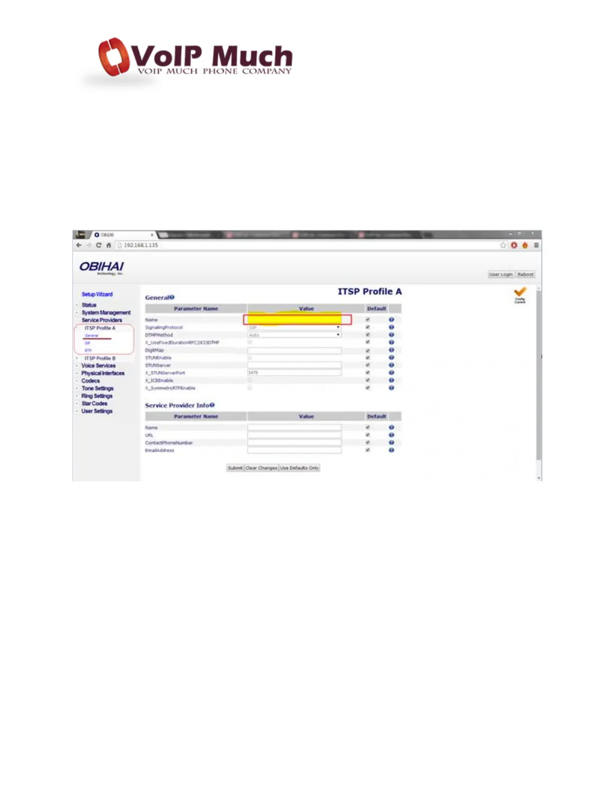 Obihai OBi110 - Configuring Service Providers; ITSP Profile General Settings