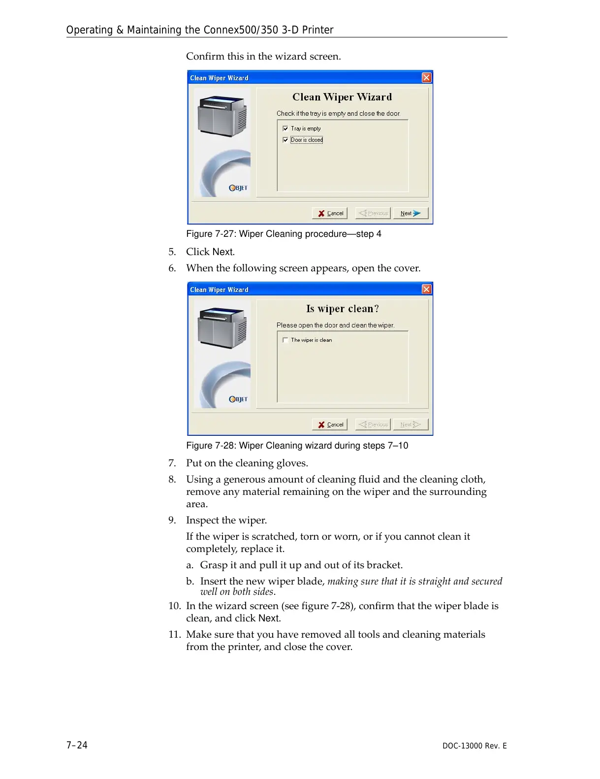 10. Inthewizardscreen(seefigure 7‐28),confirmthatthewiperbladeis