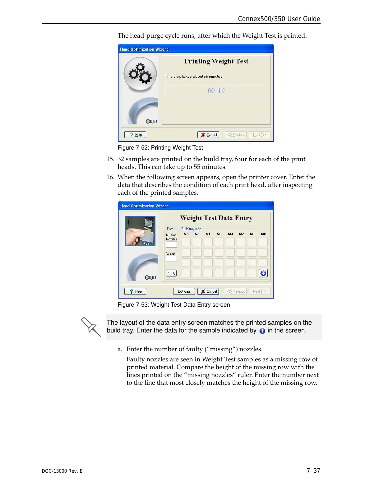 Thehead‐purgecycleruns,afterwhichtheWeightTestisprinted.