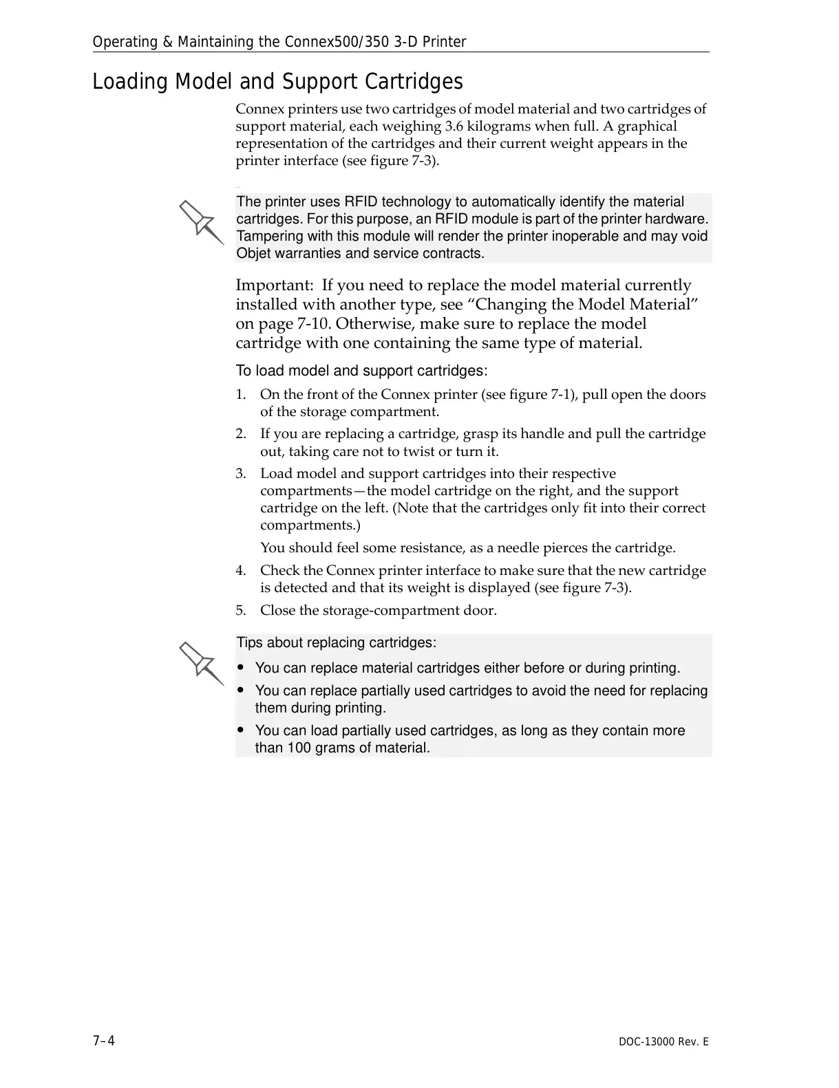 Connexprintersusetwocartridgesofmodelmaterialandtwocartridgesof