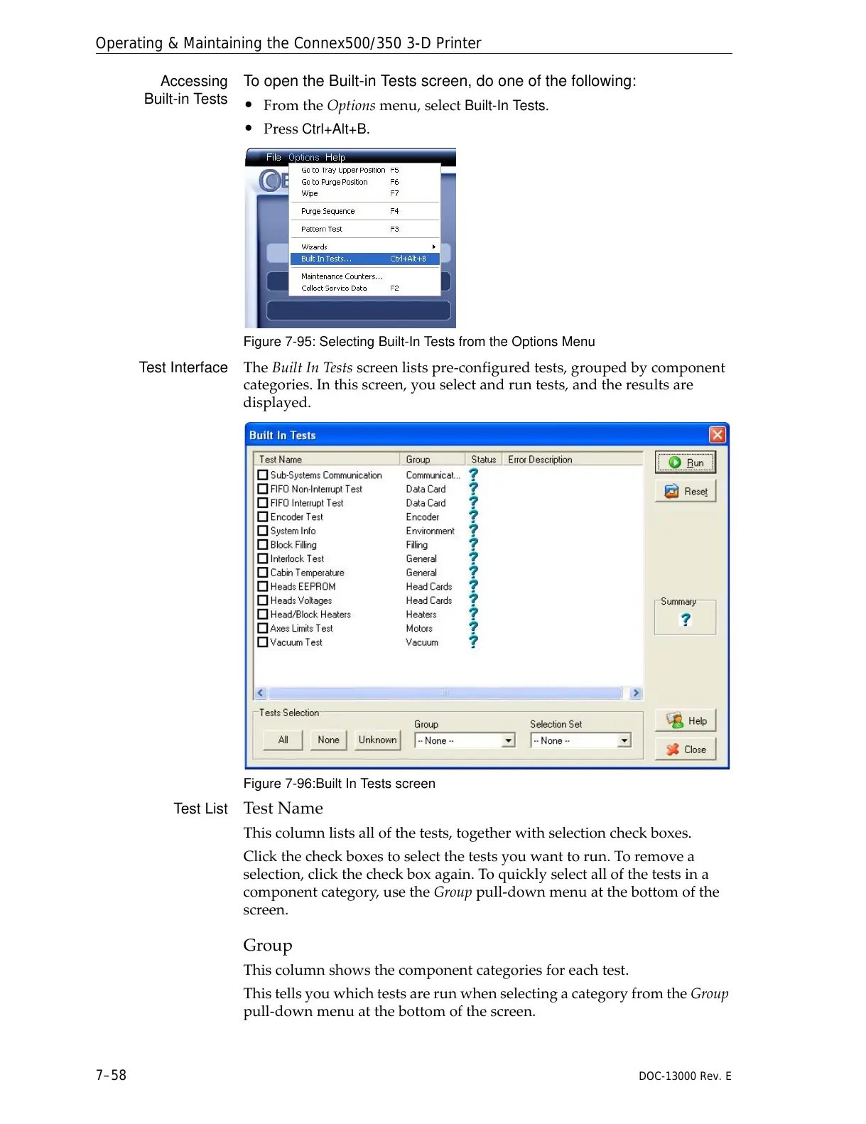 Figure 7-96:Built In Tests screen
