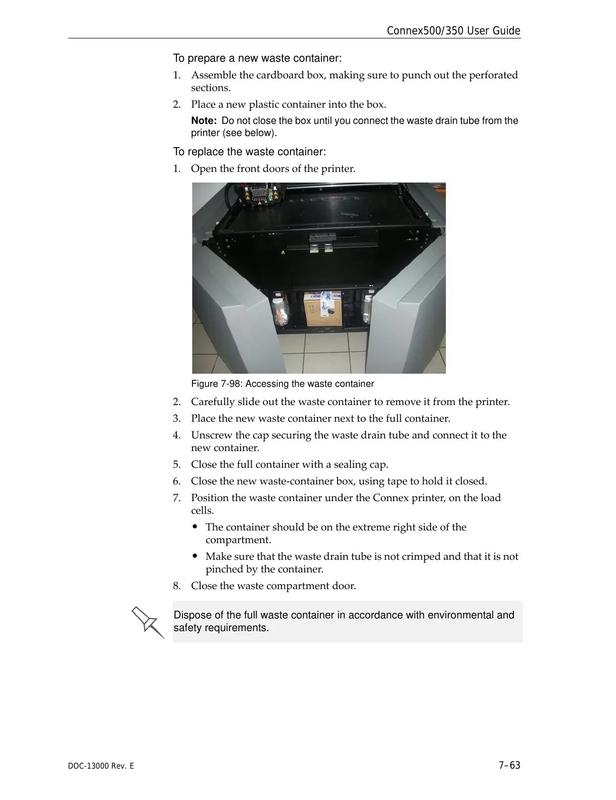 7. PositionthewastecontainerundertheConnexprinter,ontheload
