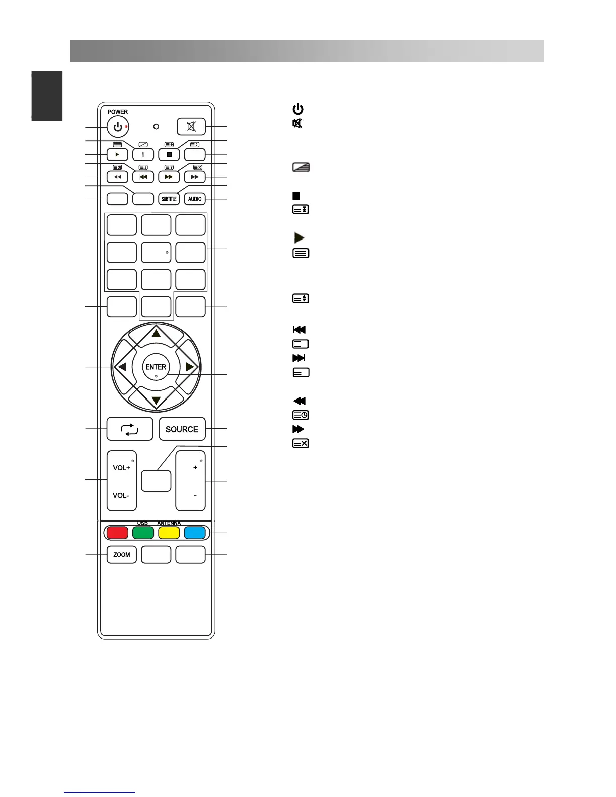 The buttons of the original remote control are as following: