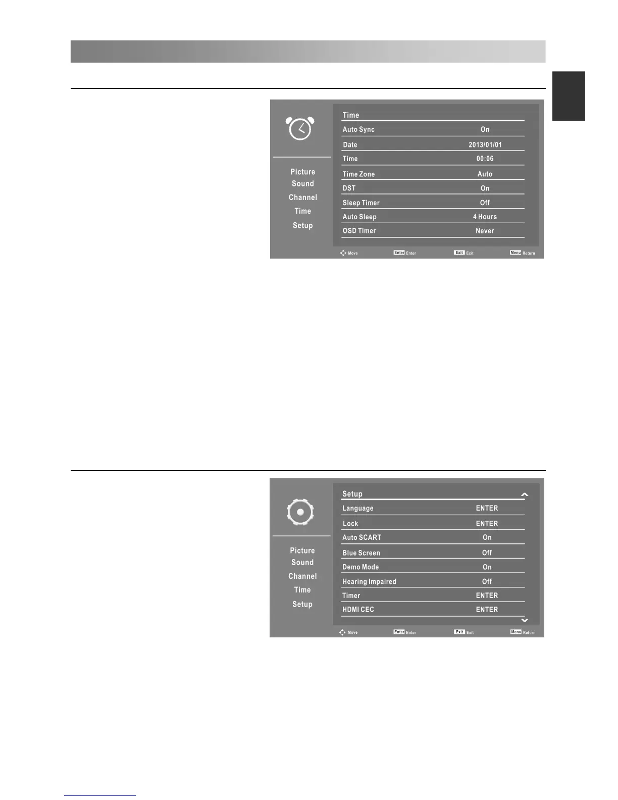 Select On-Screen Menu displaying time.