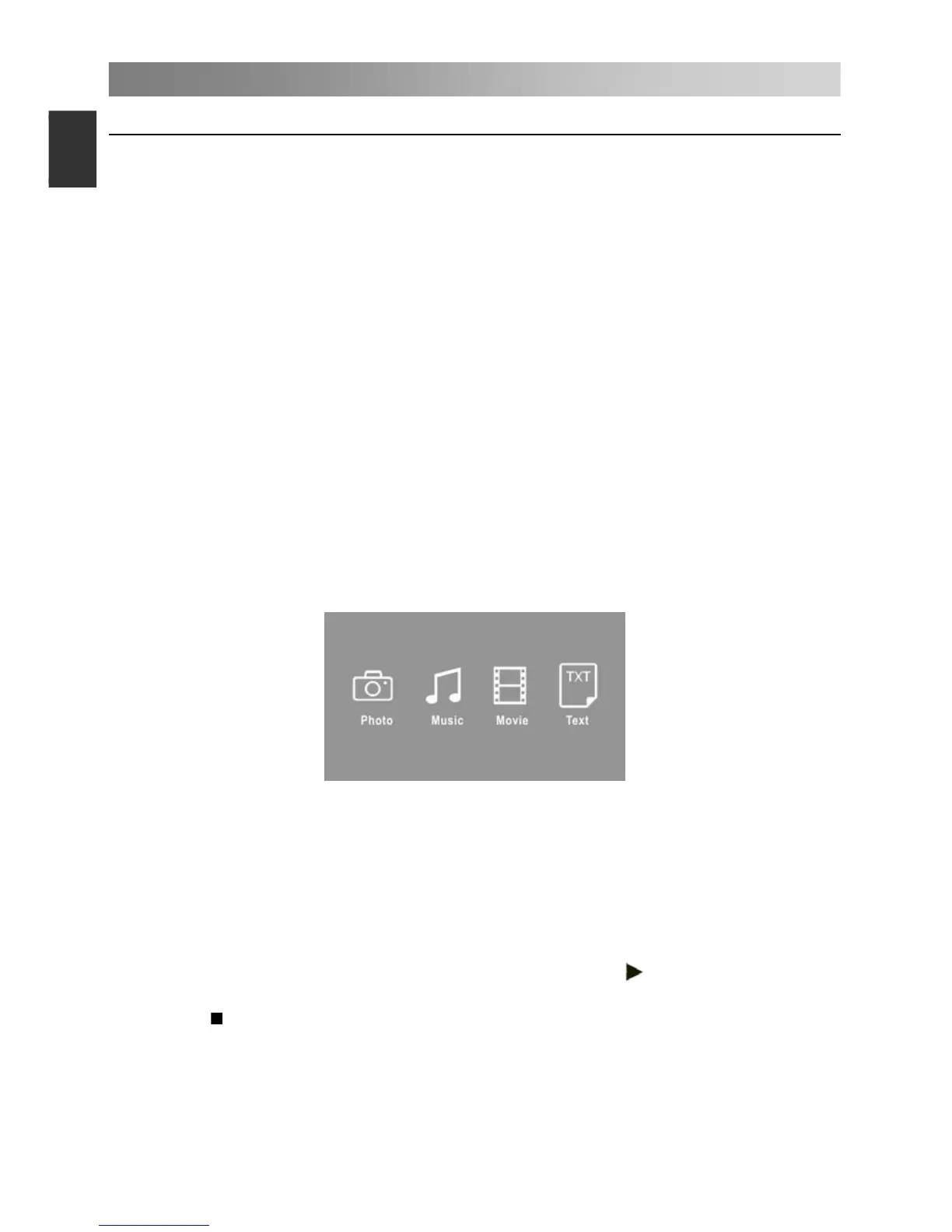 Use the ◄/► button to select Photo, Music, Movie or Text. Press ENTER button enter