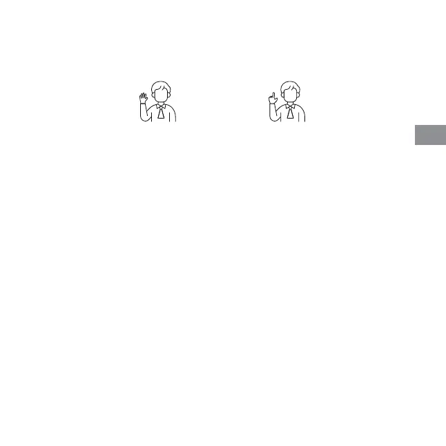 請用戶如下圖所示進行手勢操控,請注意手部不要遮擋面部並保持手指張開,Tiny 4K 將自動進行識別,直