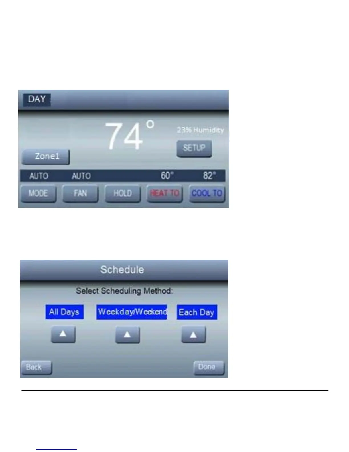 From the Setup menu, you can program a comfort schedule for