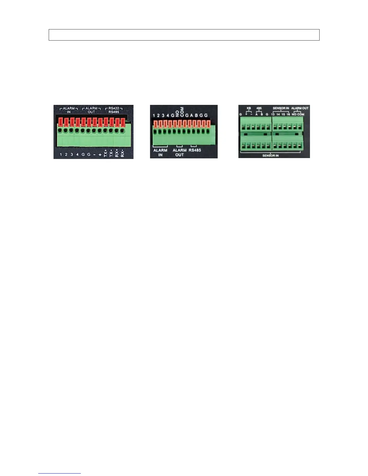 Terminal block of DVR9004N Terminal block of DVR9008N Terminal block of DVR9016N