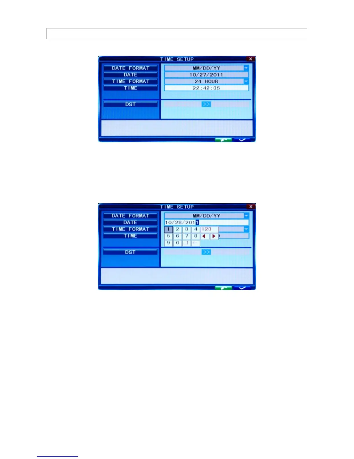 Use the method like that detailed above to setup the DST start and end time, then click the conrm entry check (