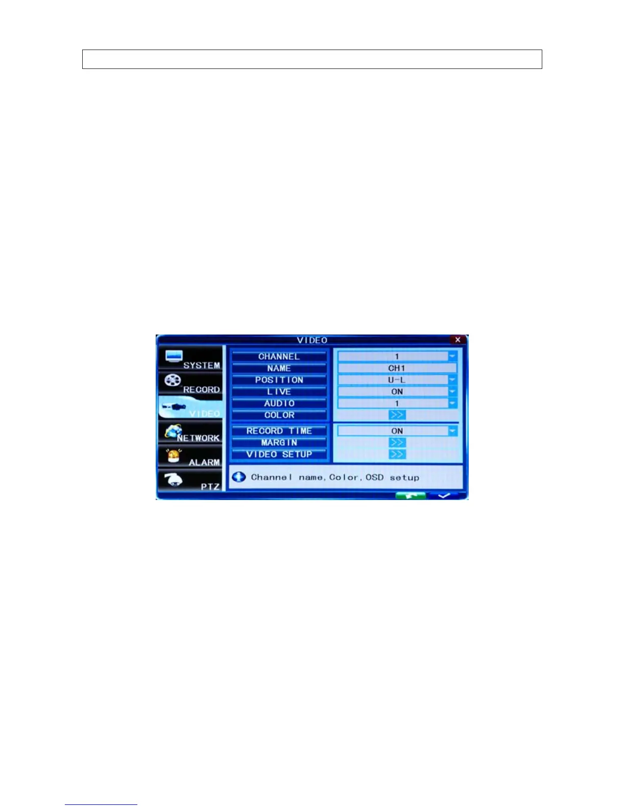 5. Click the q icon at the right end of the POSITION line. The position option selects where the camera channel NAME appears
