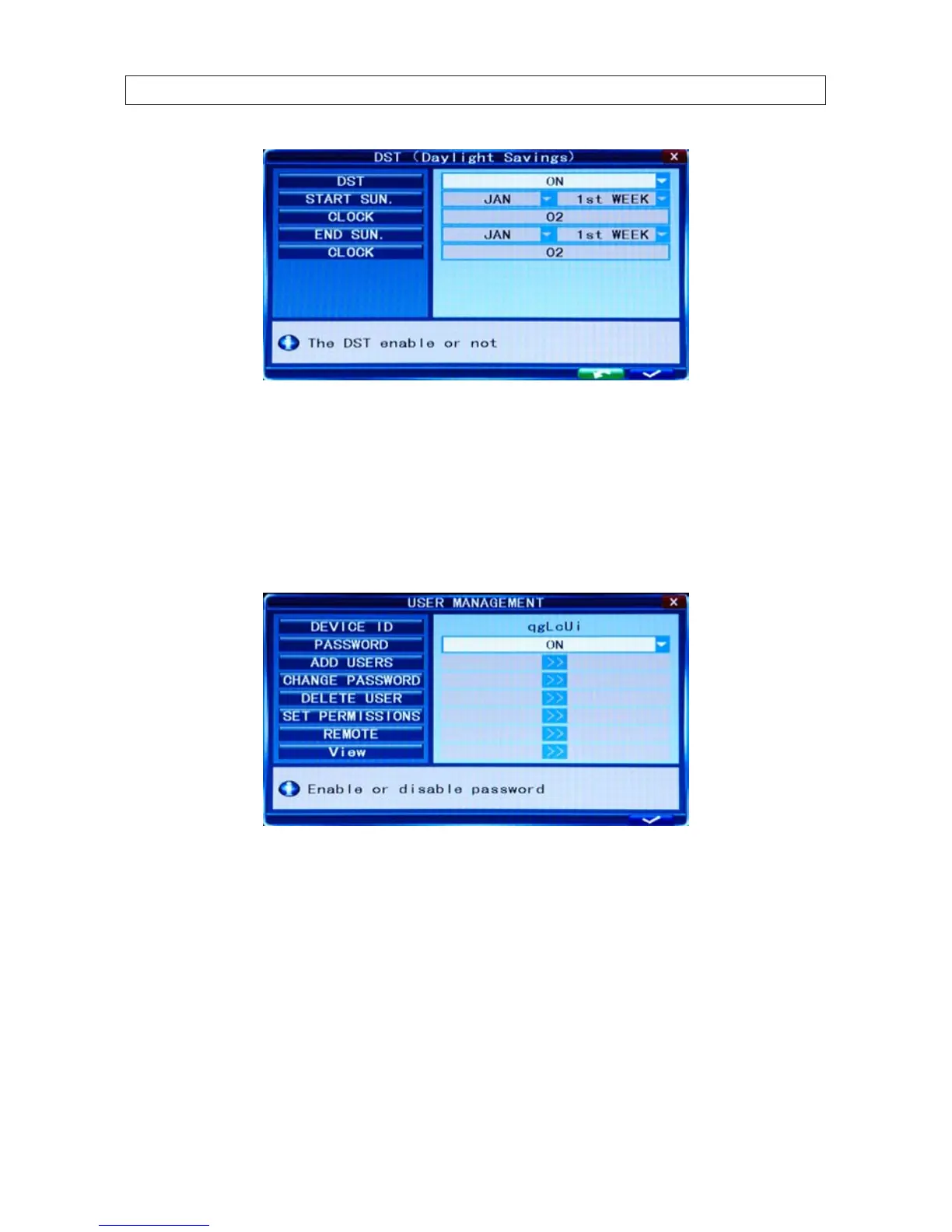 device ID for the DVR and to change the system password. After turning on password and clicking the “check” button in the lower