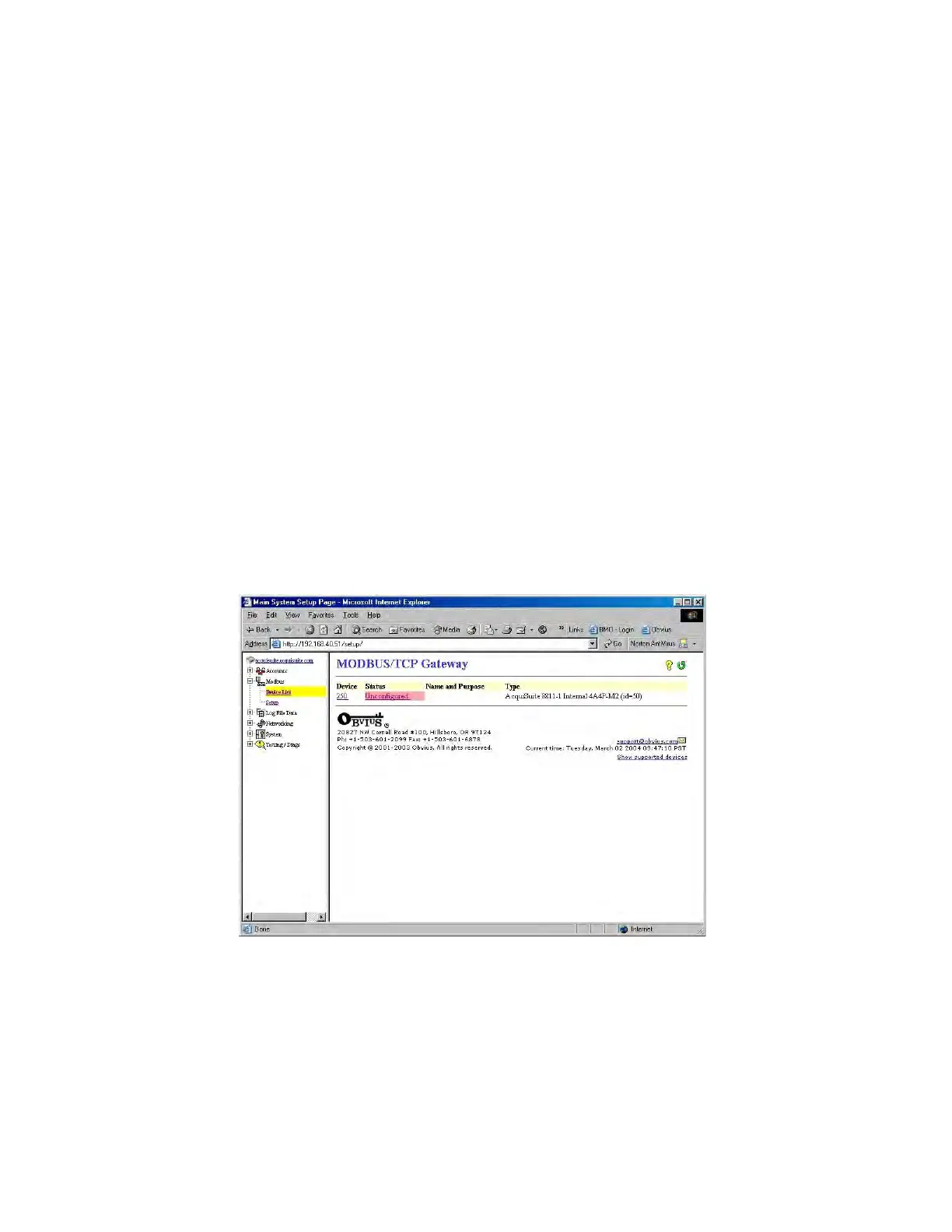 show a listing of all the currently detected or configured devices the AcquiSuite has found. The device list will show the