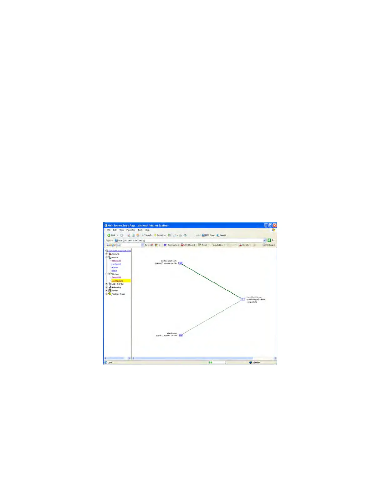 ModHopper route map. Select the ModHoppers menu from the Wireless section in the AcquiSuite menu tree as shown