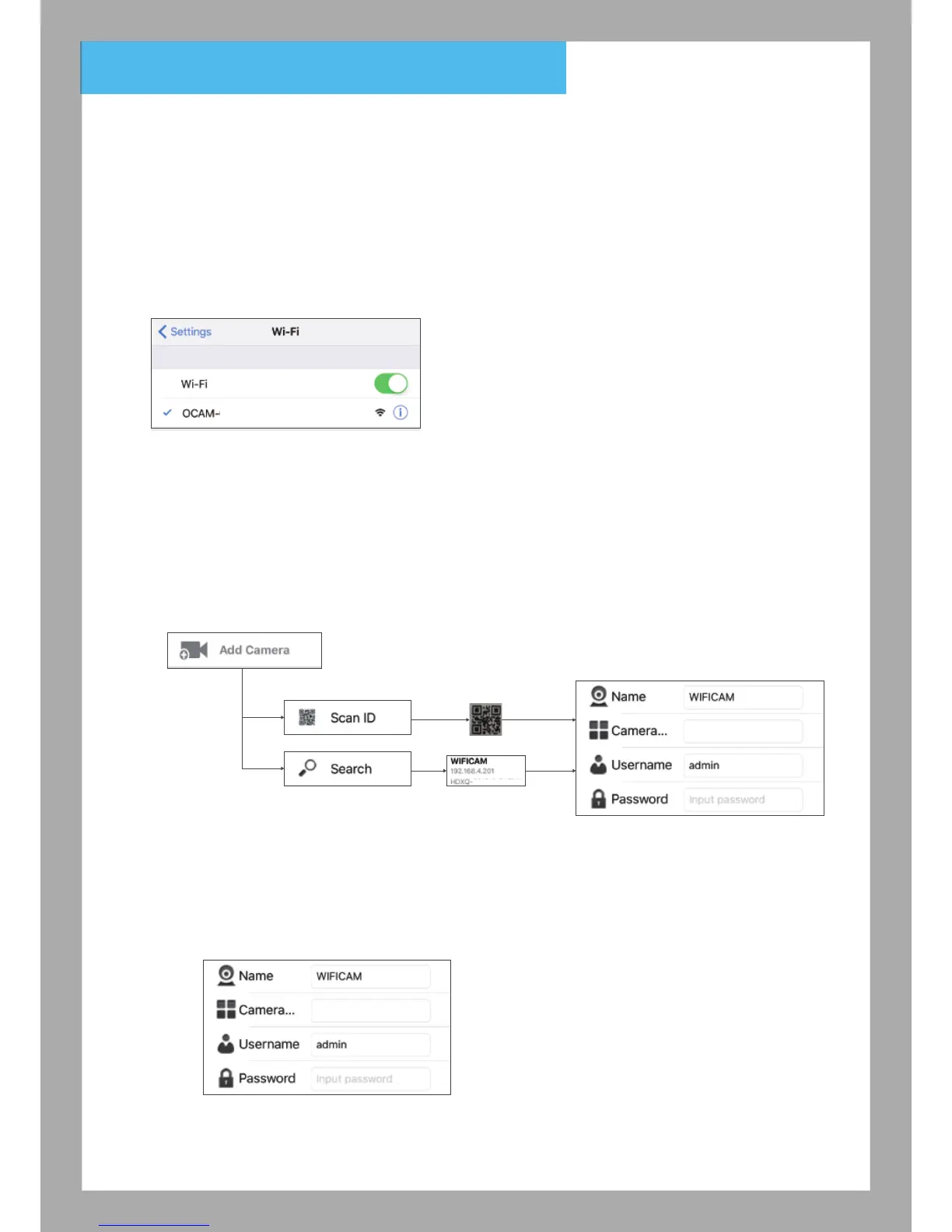3.2 Turn on the Wi-Fi on your devices and choose “OCAM-XXXXXX” on Wi-Fi list for connecting