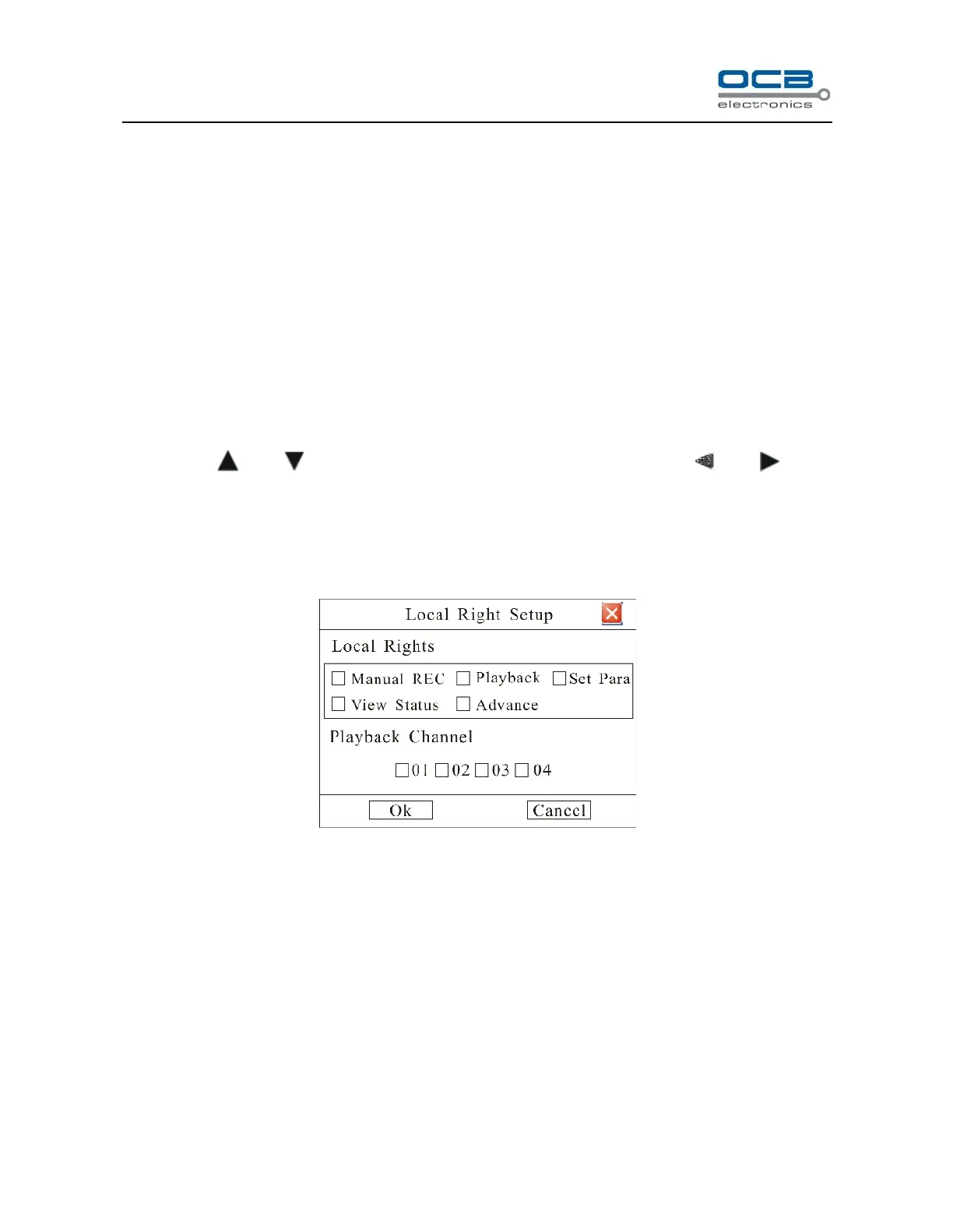 the user. Use “ ” and “ ” key to move cursor to the corresponding right items, press “ ” and “ ” key to