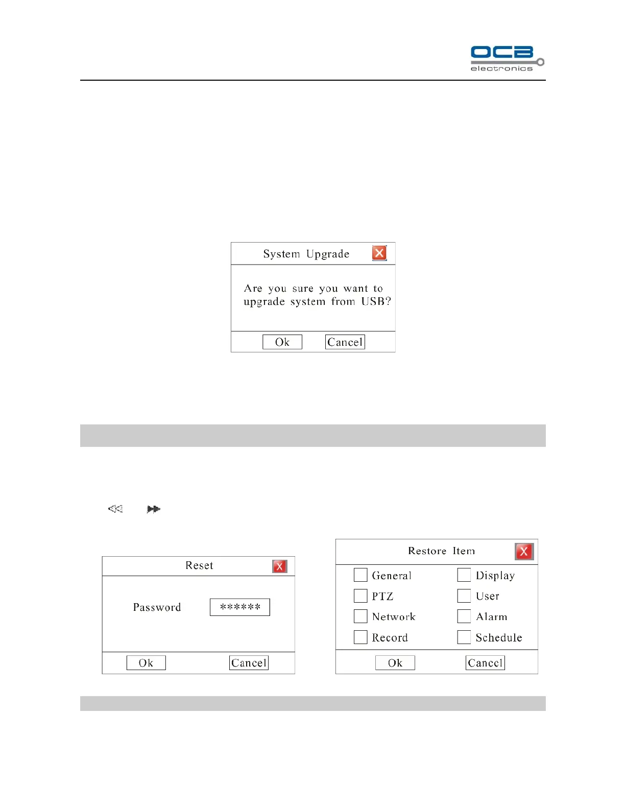 press ‘OK’ then system will pop-up “Reset Item” box. Select items in this menu and press OK to reset.