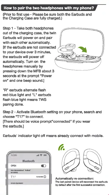 Earbuds will power on and pair