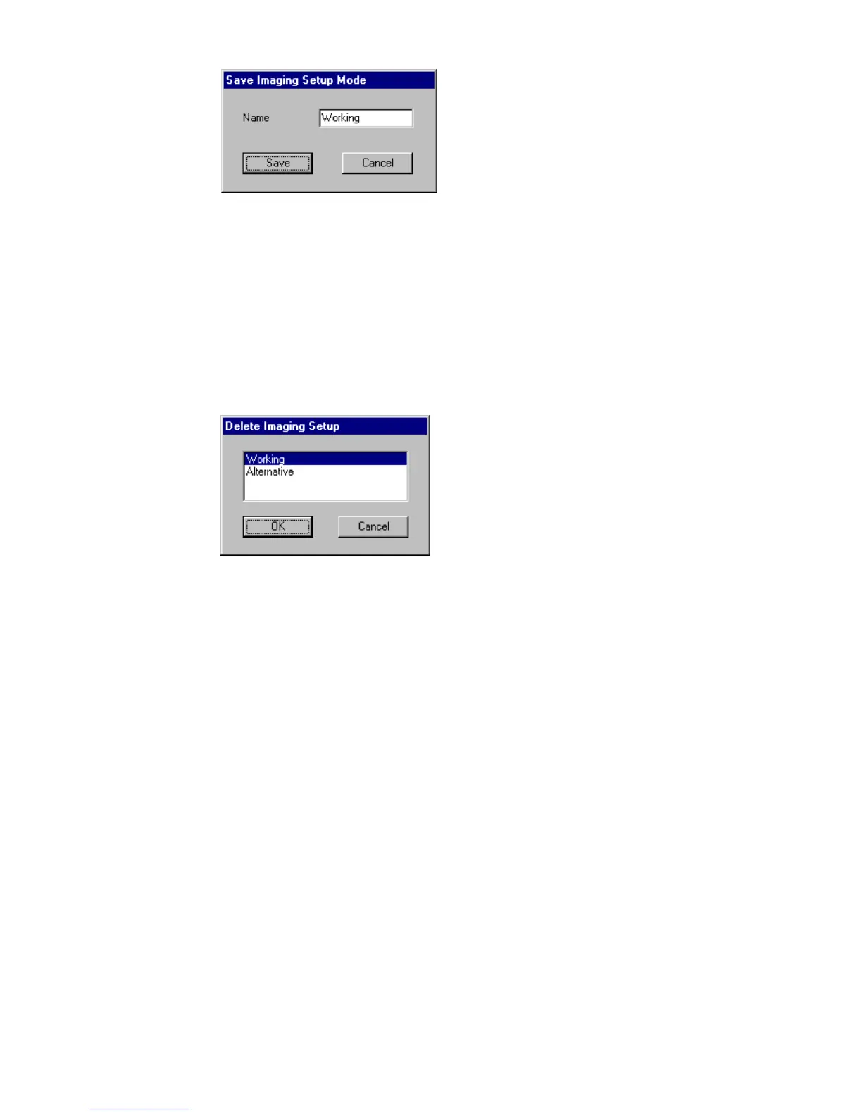▼ To delete an imaging setup: