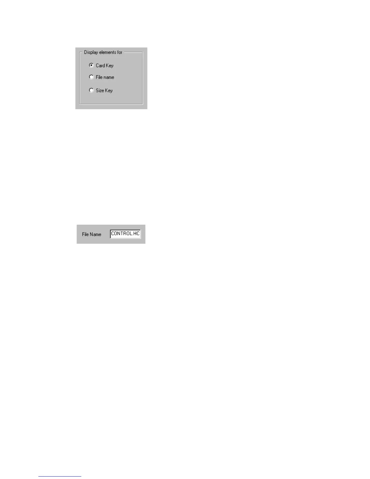 The radio buttons in the Display elements entry box select which Hollerith