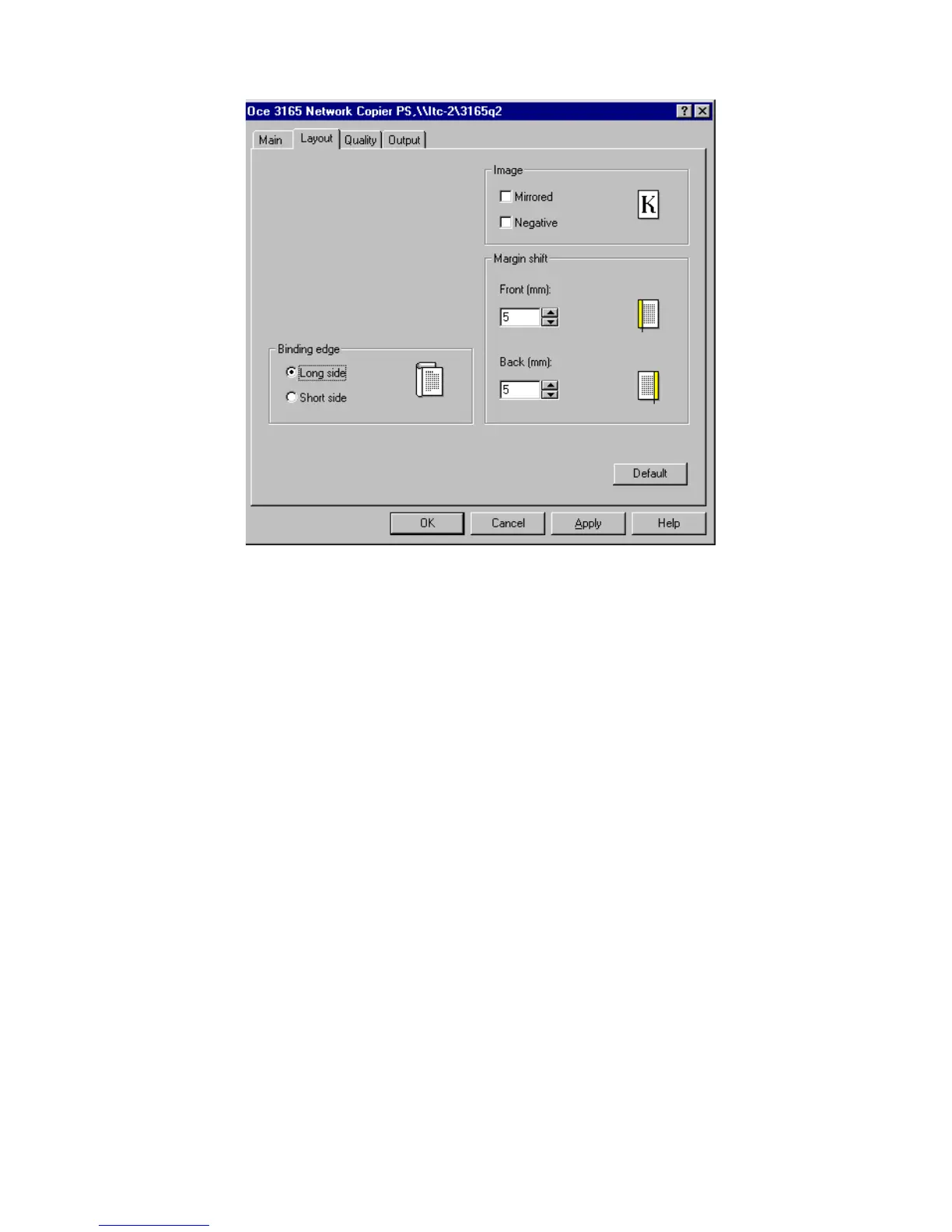 printed sheet. Use the arrow buttons to alter the binding off-set (max. -24 mm