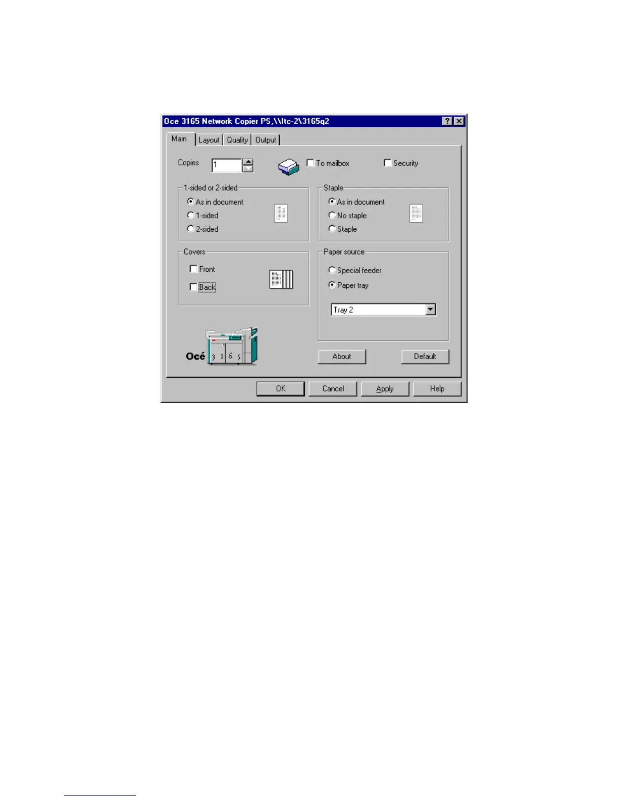 walk up to the Océ 3165, select your job in the mailbox and define the required