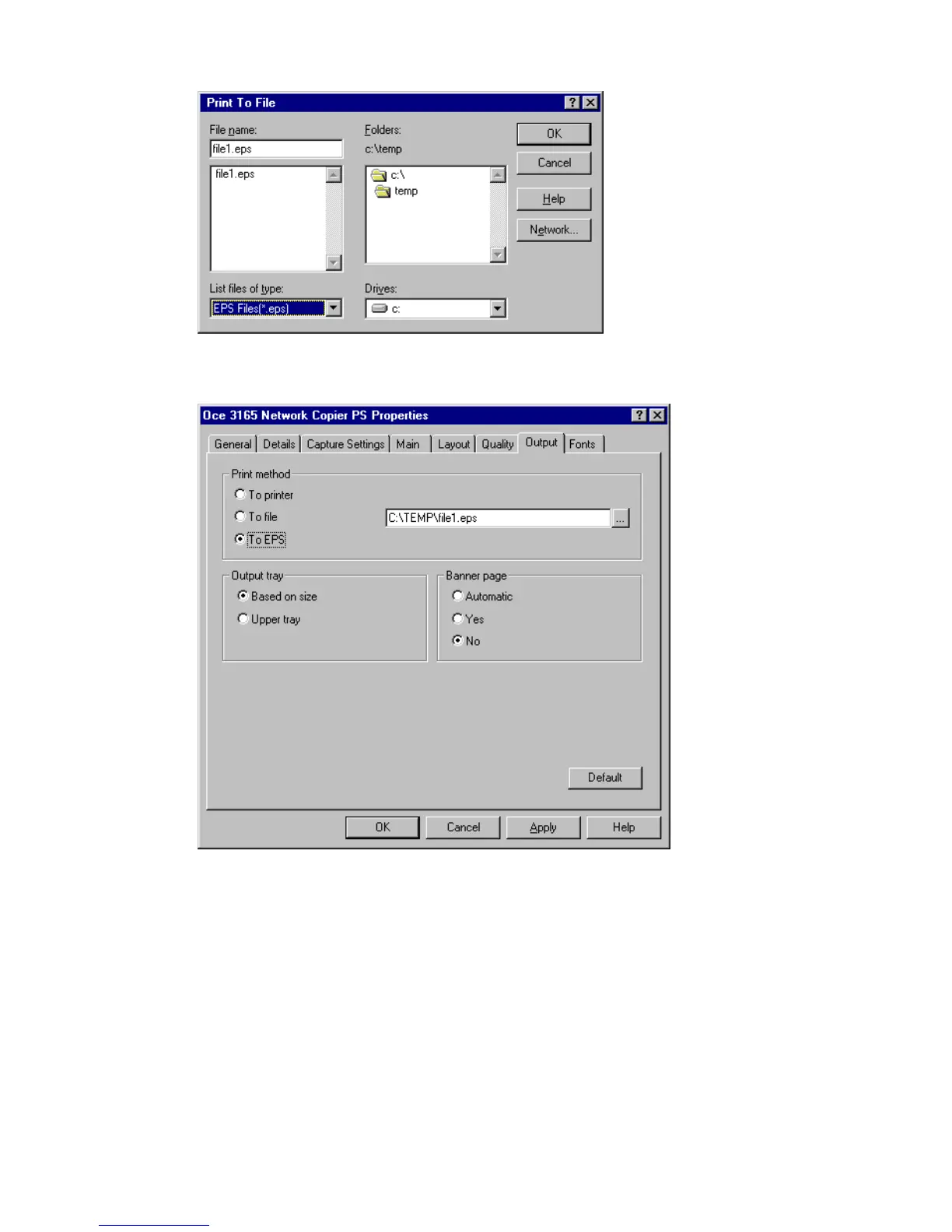 7 Select ‘OK’ to close the setup window of the Océ 3165 printer driver.