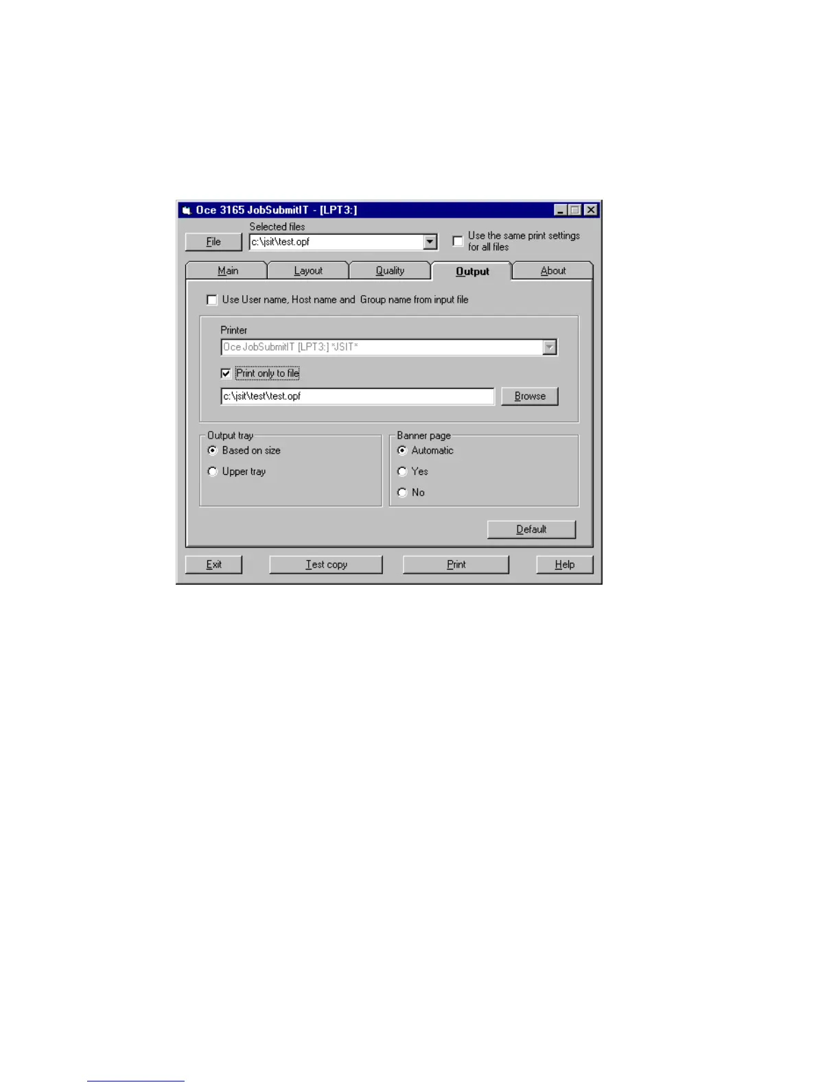 4 Open the ‘Output’ tab and check the ‘Print only to file’ option.
