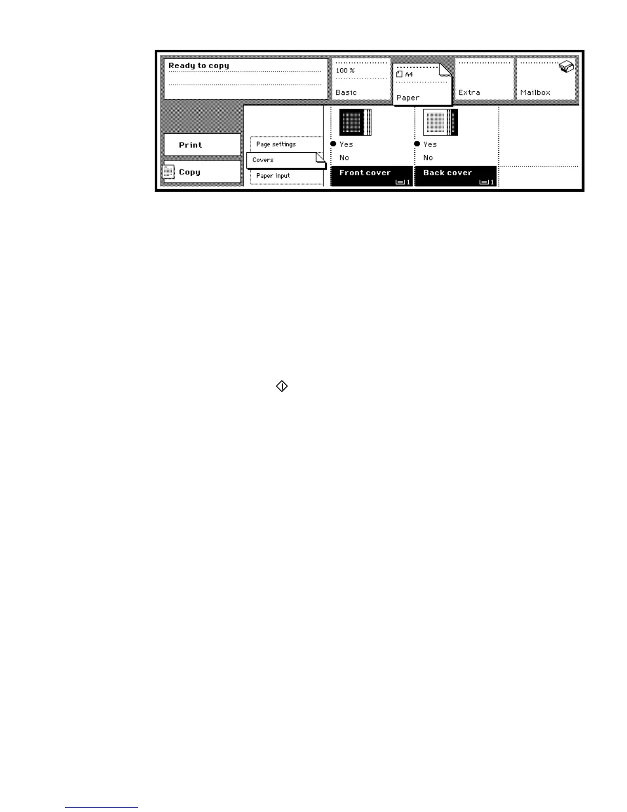 6 Ensure that the indicated paper tray contains cover material. If your key