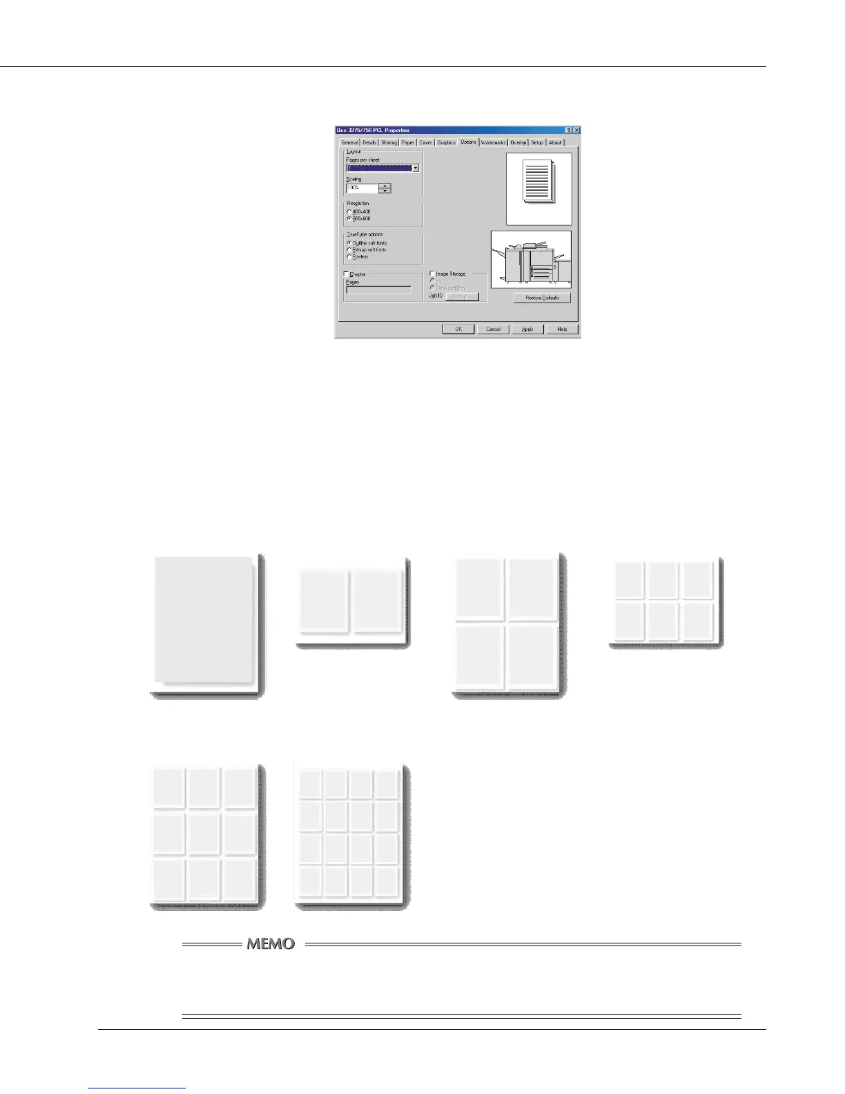 You can select the number of document pages to be printed on one piece of paper.