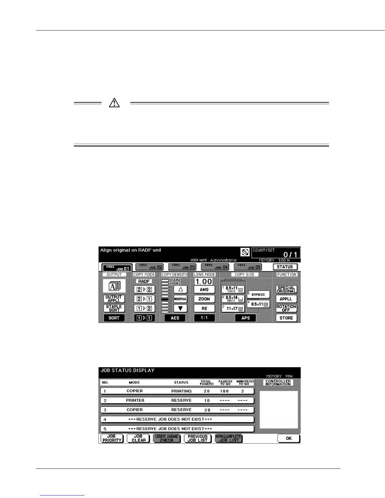 When you touch the [STATUS] key on the Basic Screen, the Job Status Screen will be