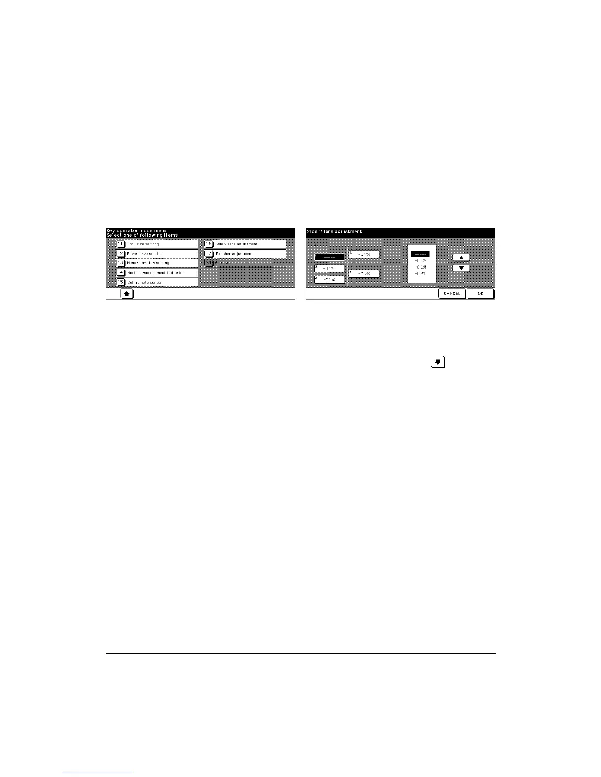 Key Operator Mode Screen 2 Side 2 Lens Adjustment Screen
