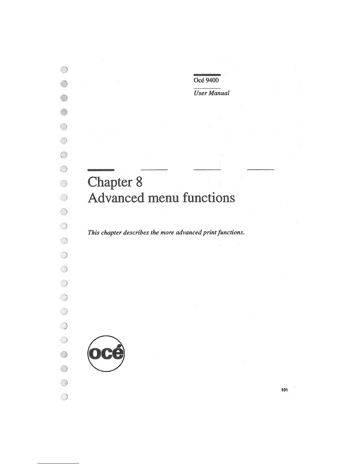 Oce 9400 - Chapter 8: Advanced Menu Functions