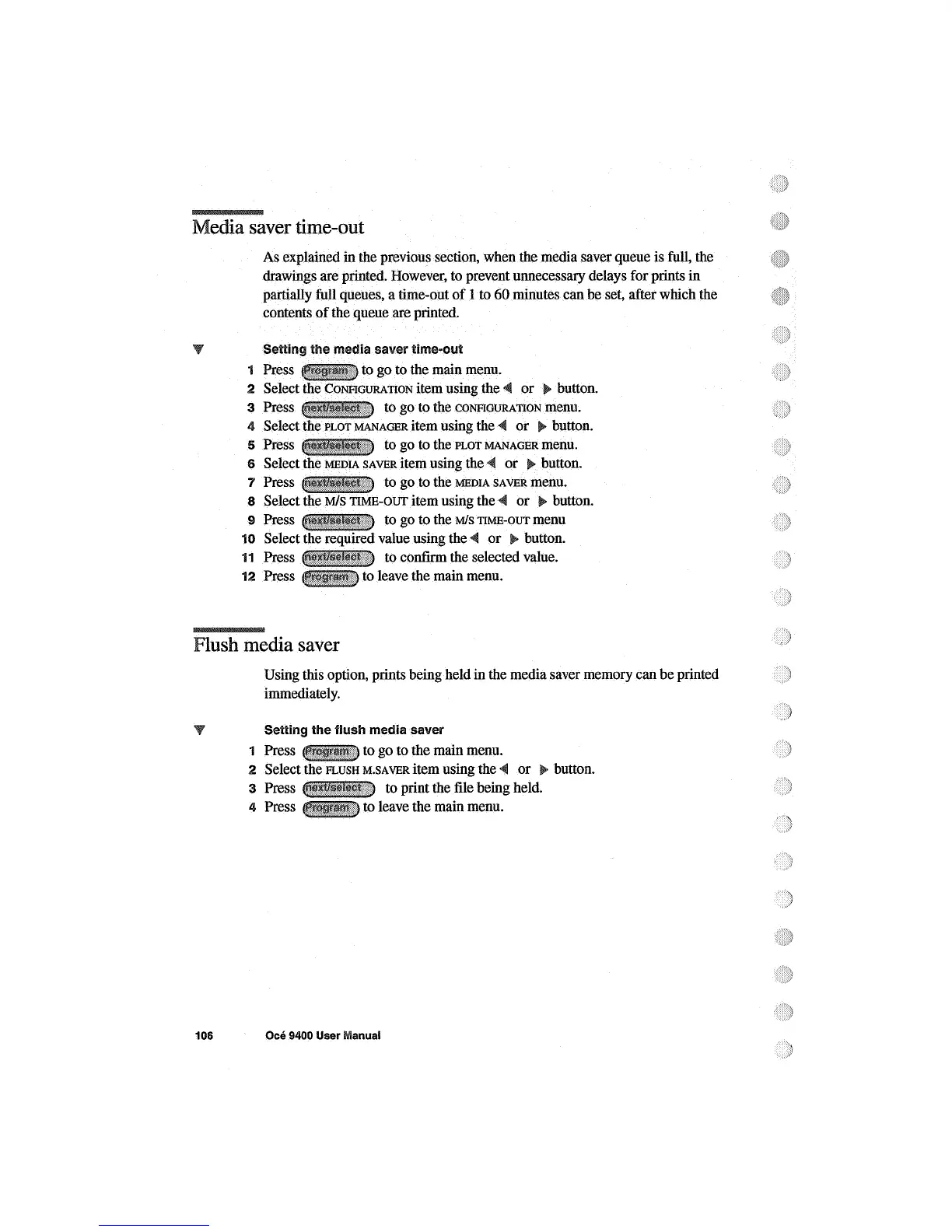Oce 9400 - Media Saver Time-Out; Flush Media Saver