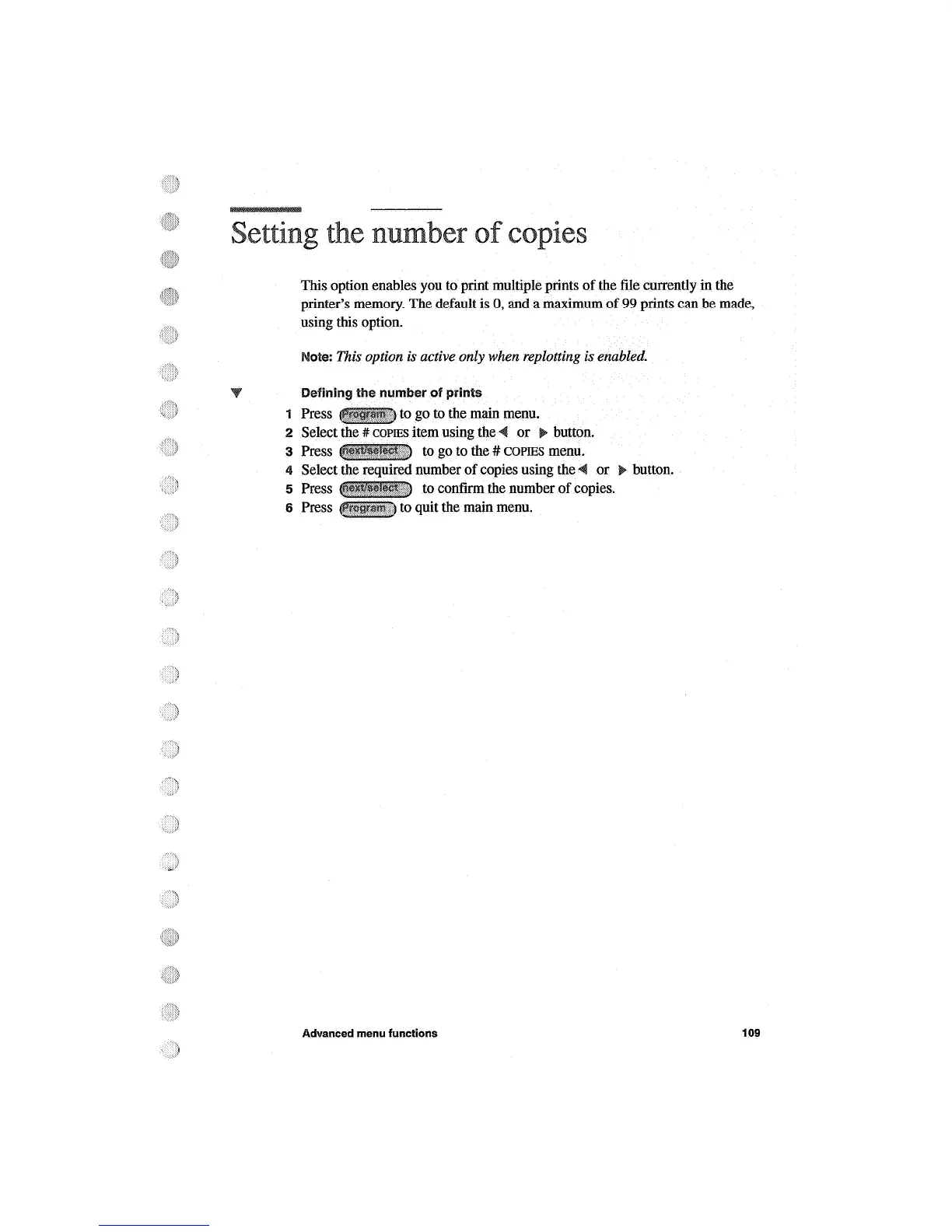 Oce 9400 - Setting the Number of Copies; Defining the Number of Prints