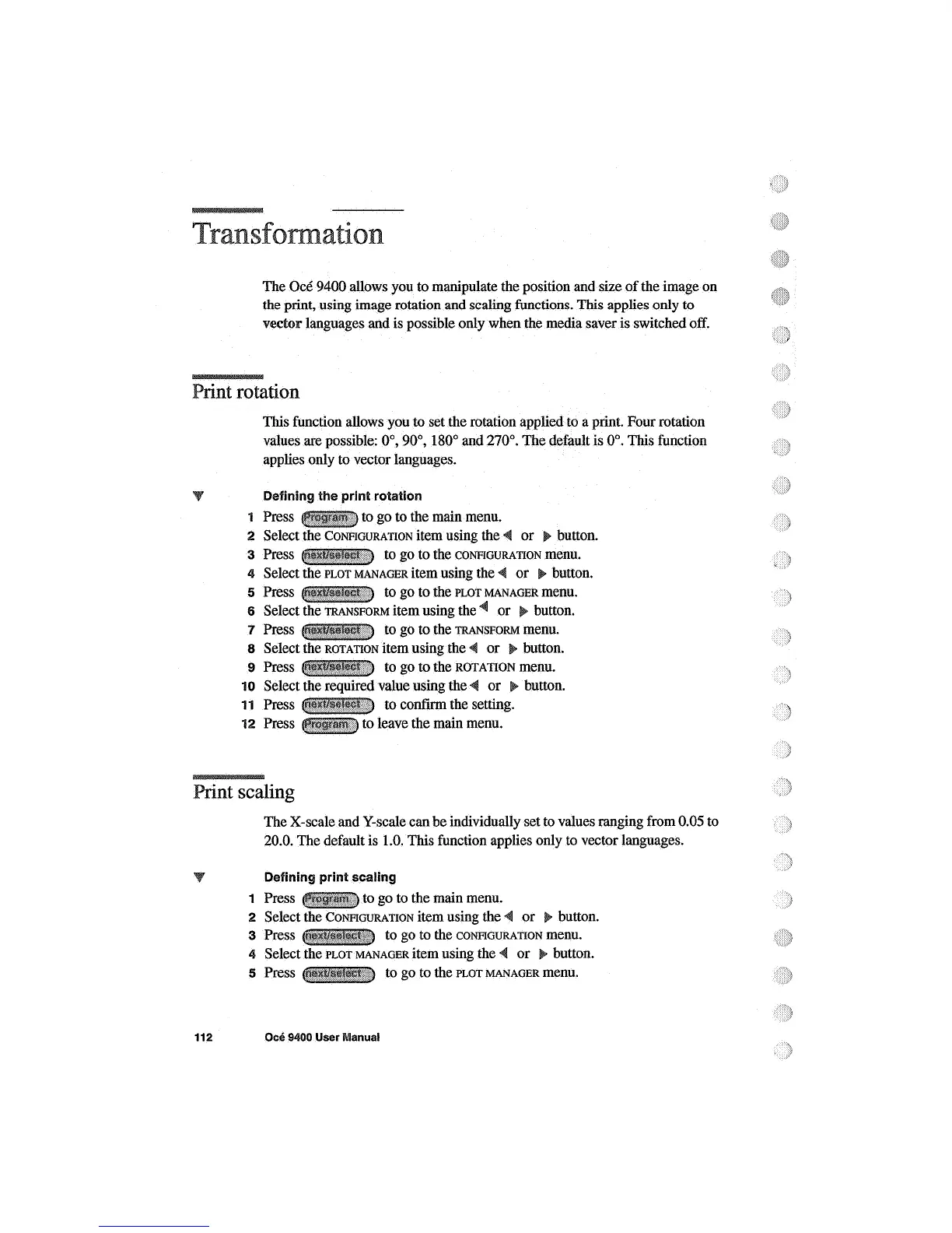 Oce 9400 - Transformation; Print Rotation; Print Scaling