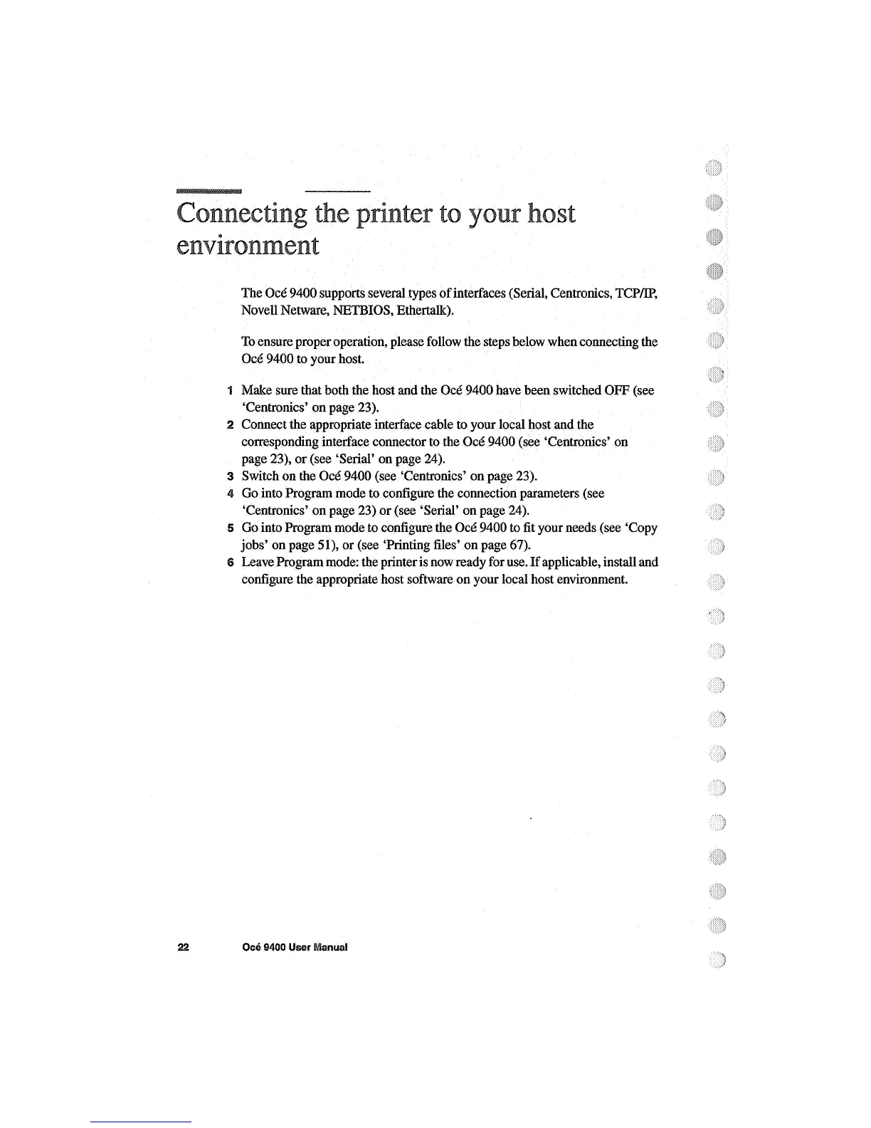 Oce 9400 - Connecting the Printer to Your Host Environment