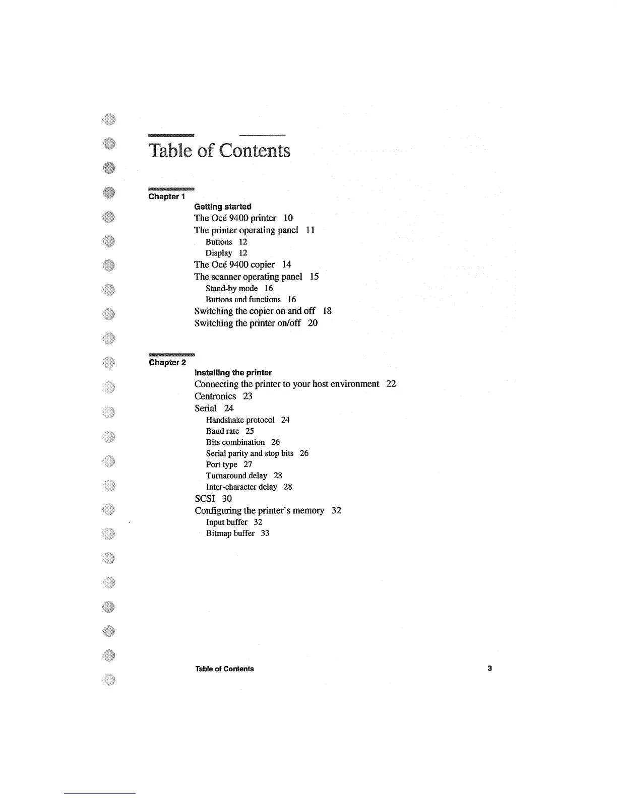 Oce 9400 - Table of Contents