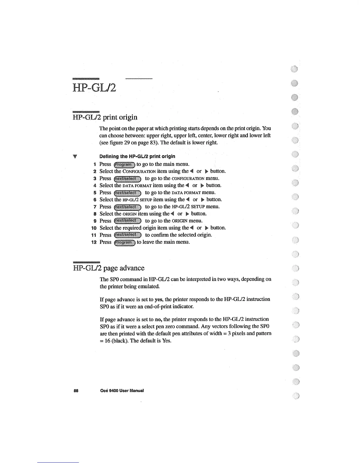 Oce 9400 - HP-GL;2 Print Origin; HP-GL;2 Page Advance