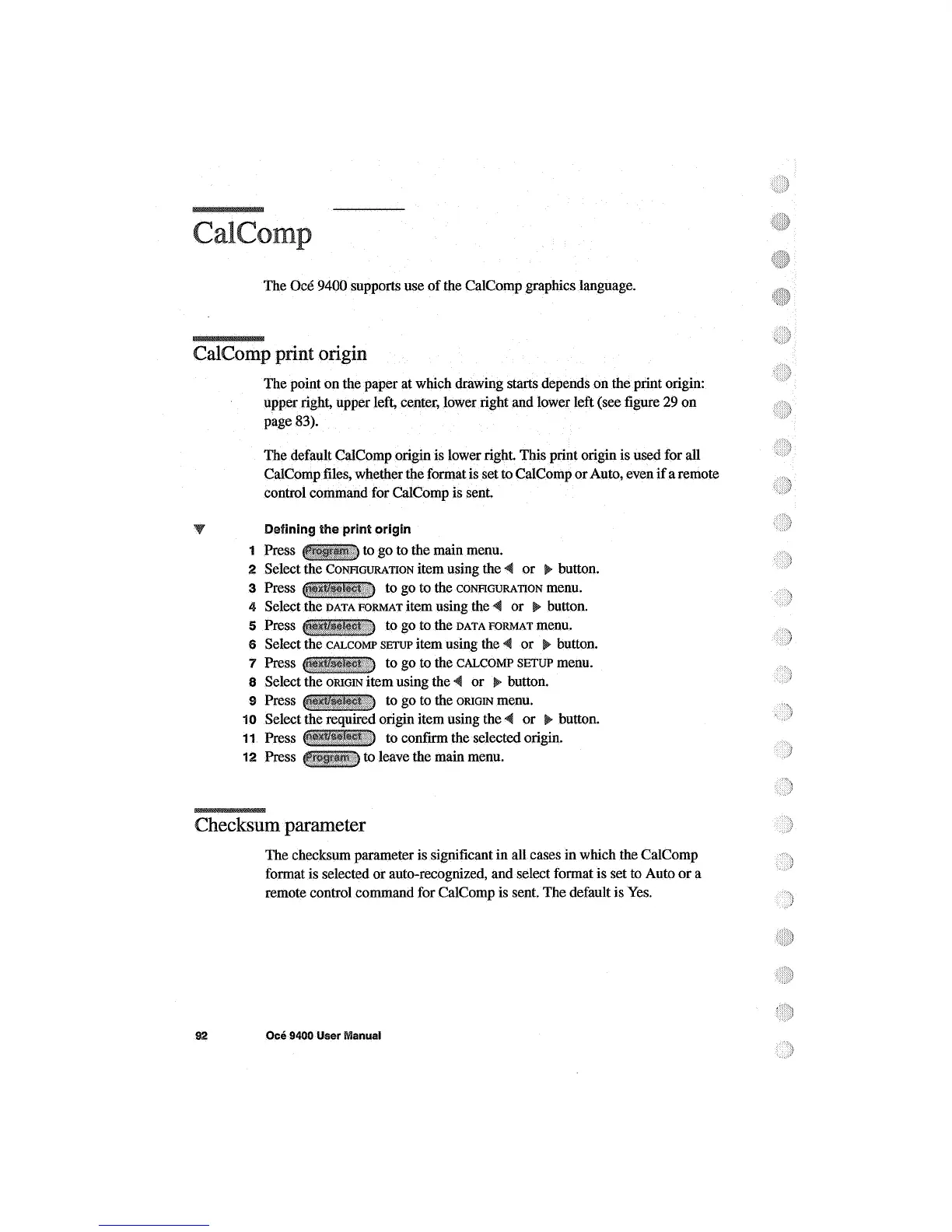 Oce 9400 - Calcomp Print Origin; Checksum Parameter
