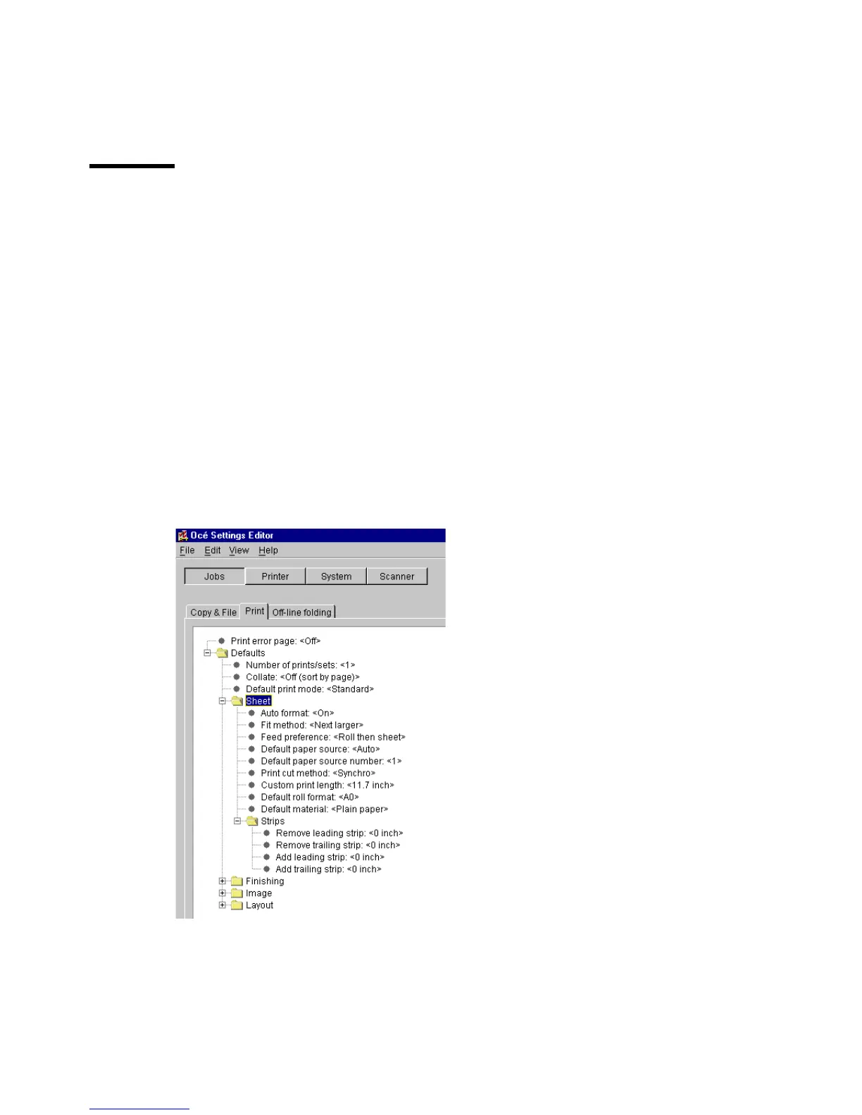 Jobs - Print - Defaults - Default print mode - <value> - Apply
