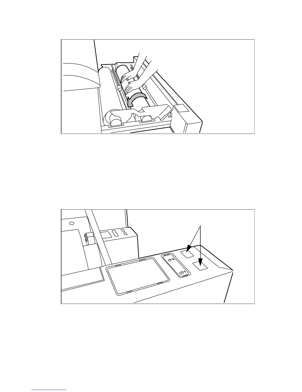 Press the appropriate green button inside the paper roll compartment (see