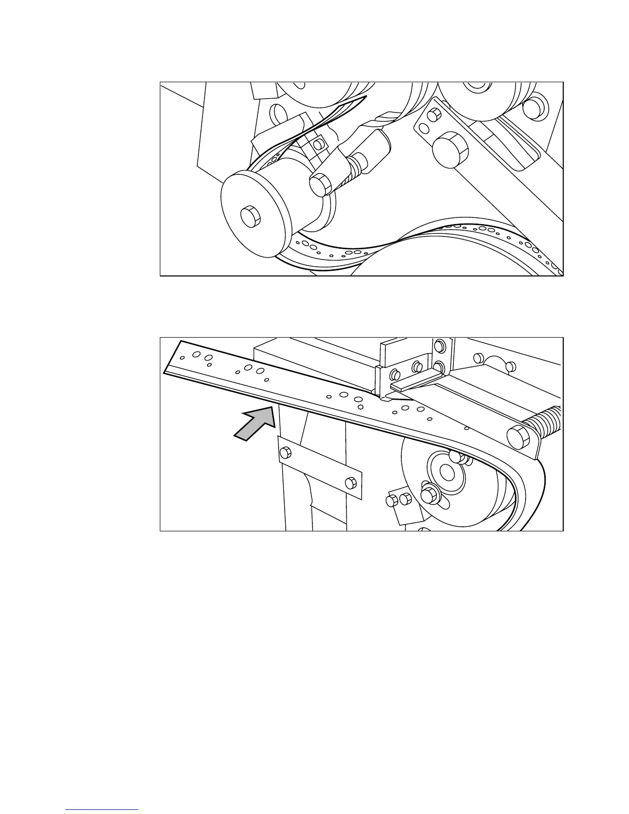 Lead the tape between the upper and lower knife and over the pin roller (see