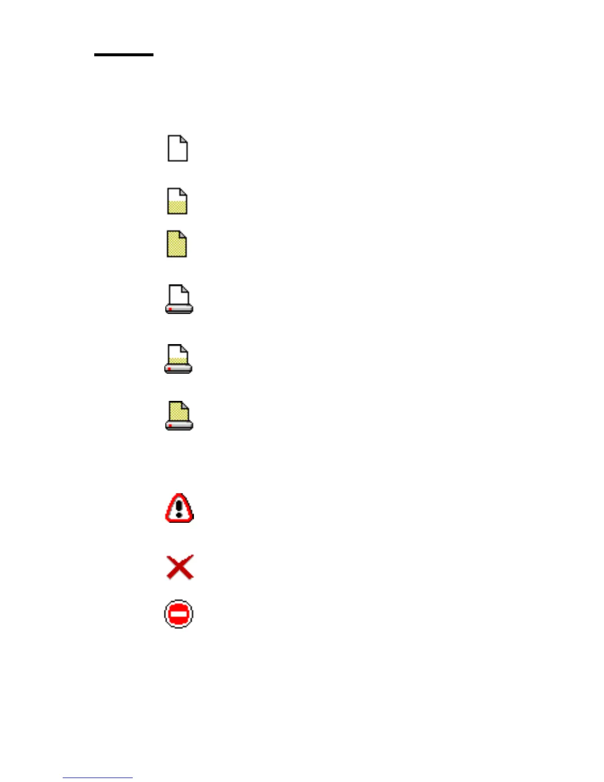The Océ 9600 Queue Manager uses a number of icons to display information