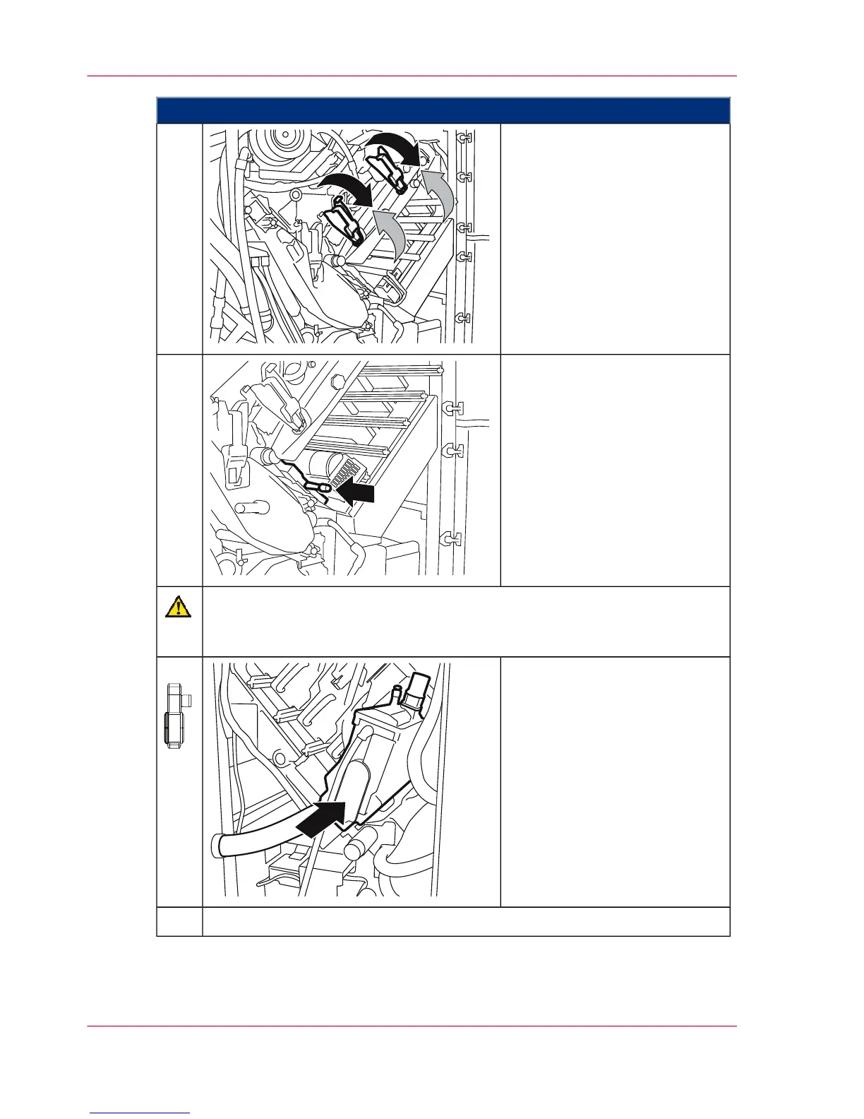 Take care not to pinch the hose when pushing in a developer station.