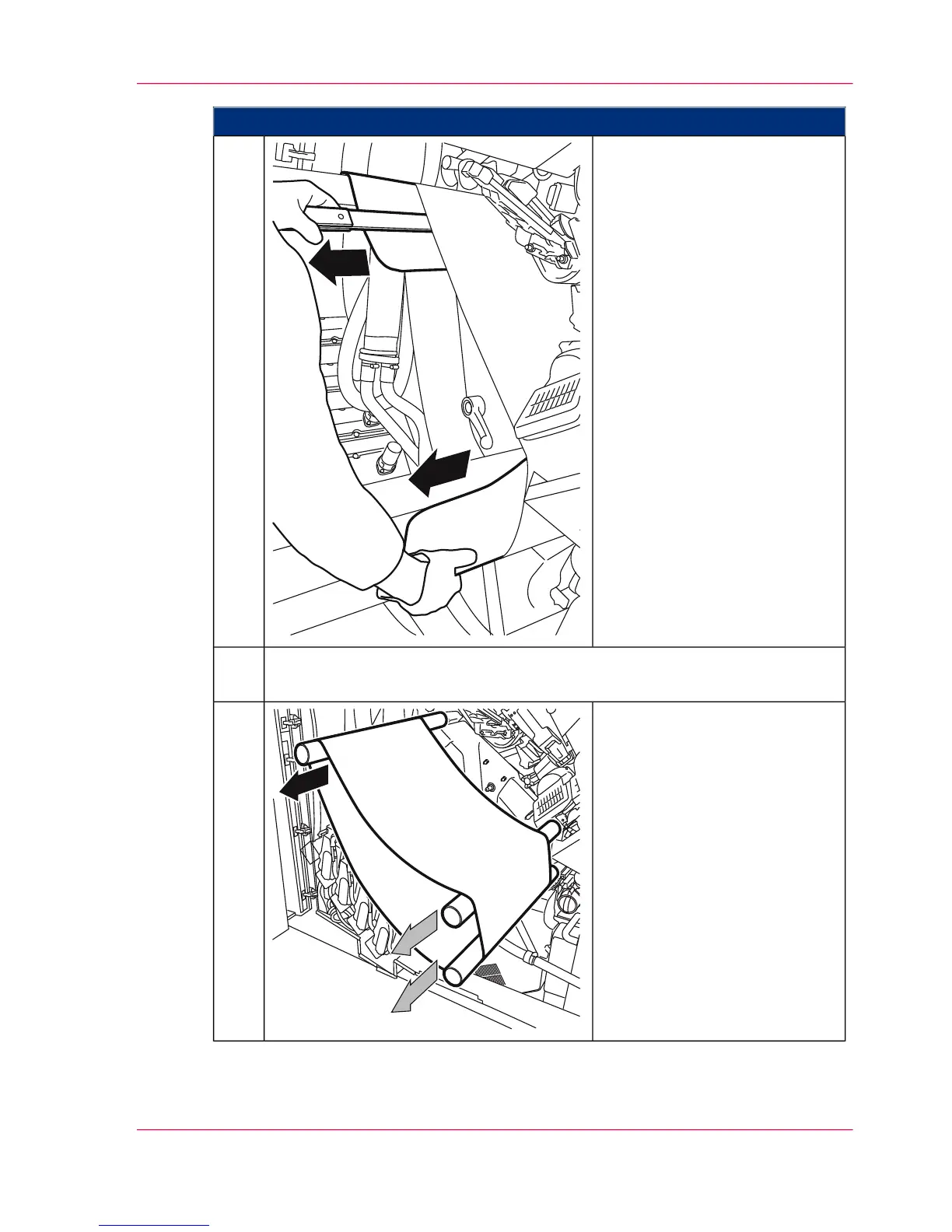 Carefully loosen the insertion tool and sliding foils from the transfer belt and