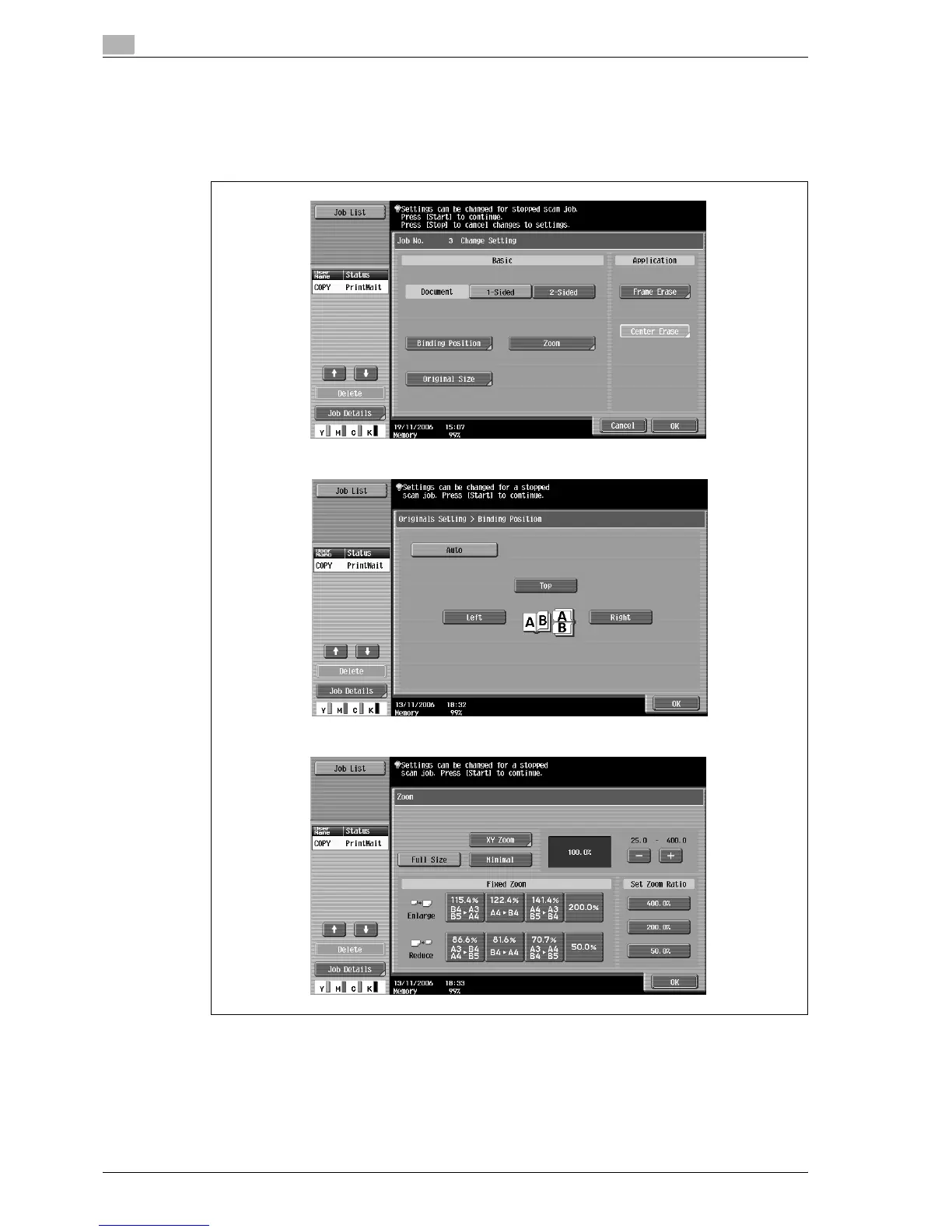 1-Sided/2-Sided, Binding Position, Zoom, Frame Erase, Center Erase, Original Size