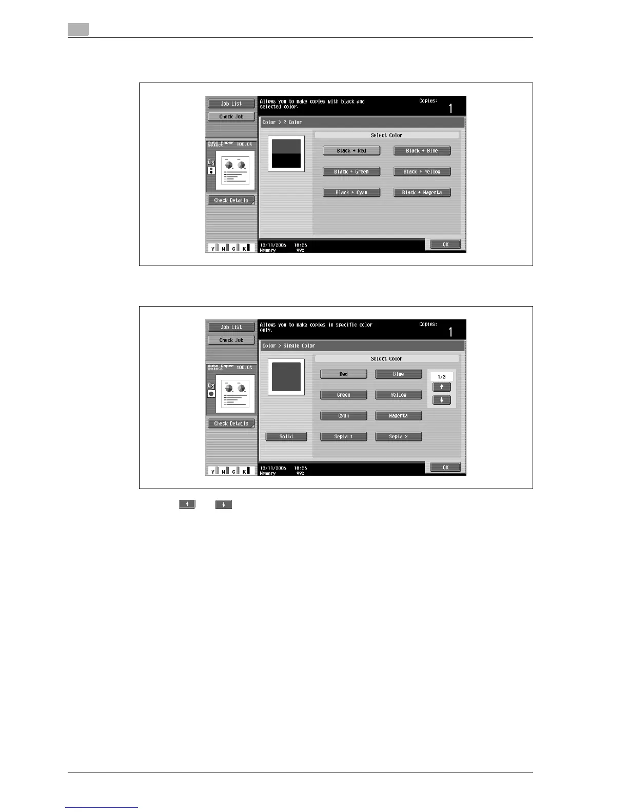 – With the "2 Color" setting, various color combinations are available. Color combinations other than